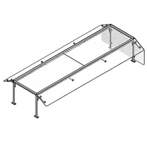 Sneeze Guard, 88-3/4"L, double service, (2) end panels, fixed 1/4" thick tempered glass shields & 3/8" thick tempered glass top, flanged feet, powder coated finish (contact factory for price)
