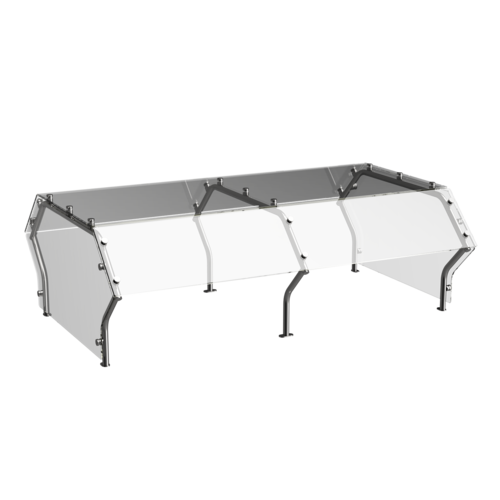 Custom Sneeze Guard, 23-7/8"W, double-sided, self-service, 3/8" thick tempered glass front & top, 1/4" thick end panels, 1" OD welded & polished stainless steel tubular frame, stainless steel mounting brackets, UL EPH CLASSIFIED (contact factory for pricing)