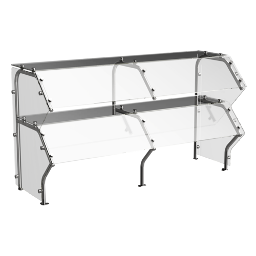 Custom Sneeze Guard, 77-3/8"W, double-deck, single-sided, self-service, 3/8" thick tempered glass front, top, & shelf, 1/4" thick end panels, 1" OD welded & polished stainless steel tubular frame, center supports, stainless steel mounting brackets, UL EPH CLASSIFIED