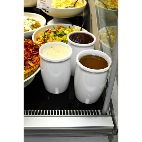 Dressing Pot, 1 qt., 4-1/4" dia. x 6-1/2"H, round, chip and stain resistant, dishwasher safe, melamine, white, Dalebrook