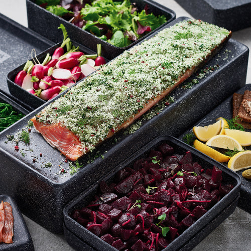 Kata Collection Crock, 1-3/4 qt., 20-1/2"L x 6-3/4"W x 1-1/2"H, rectangular, chip and stain resistant, dishwasher safe, melamine, black, Dalebrook