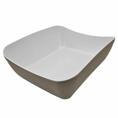 Verdura Collection Deli Crock, GN 1/2 size, 4 qt., 12-3/4"L x 10-1/2"W x 4-1/4"H, fits TC6612L & TPO6612, rectangular, anti-slip silicone feet, chip and stain resistant, dishwasher safe, melamine, white interior, stone exterior, Dalebrook