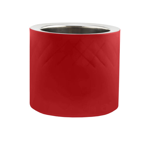 Cold Wave Salad Dressing Container, 28 oz., 5-1/8" dia. x 5"H, round, diamond design, triple wall, pre-freezing bowl keeps food cold for 8 hours at ambient temperature, stackable plastic cover, stainless steel, red finish