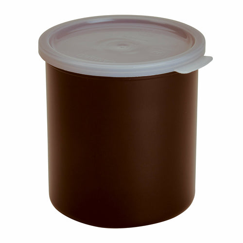 Crock, 2.7 qt., 6-5/8" dia. x 6-3/4"H, round, with polyethylene lid, dishwasher safe, polypropylene, reddish brown, NSF