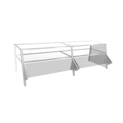 Double-Deck Food Shield, 73-1/2" W x 18-1/2" D x 21"H, single-sided self-service style, 2-tier 1/4" glass shelves, 1" square stainless tube frame, 1/4" glass guards with stainless steel edging, stainless steel brackets & 1/4" acrylic end guards (NOTE: upper deck for wrapped food only), cUlus, UL EPH Classified