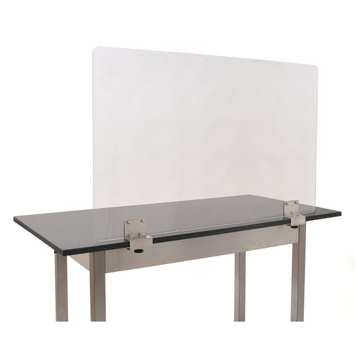 Breath Shield, clamp-on, 30" W x 30" H panel, 7/32" thick plexiglass construction, 1"radius corners, stainless steel clamps with 1"-1-1/2" range, (NET)