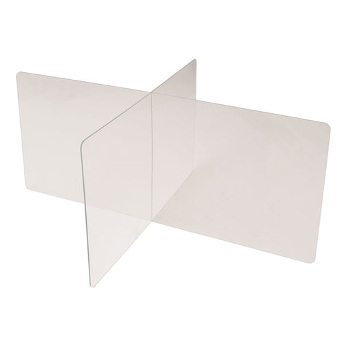 Breath Shield, freestanding, divider for rectangular or oval tables, section off table into 4 sections, 72" W x 30" L x 24" H, 7/32" thick plexiglass construction, panels interlock for assembly, no tools required for assembly, knocks down for storage (NET)