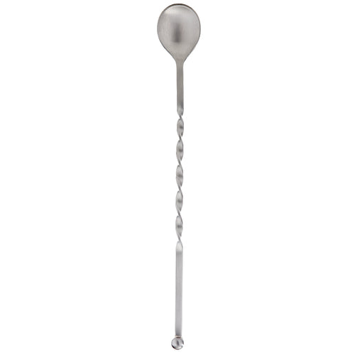 Bar Spoon, 11-1/2" long, one-piece, twisted handle, ball on top, stainless steel, brushed finish (premium carded)