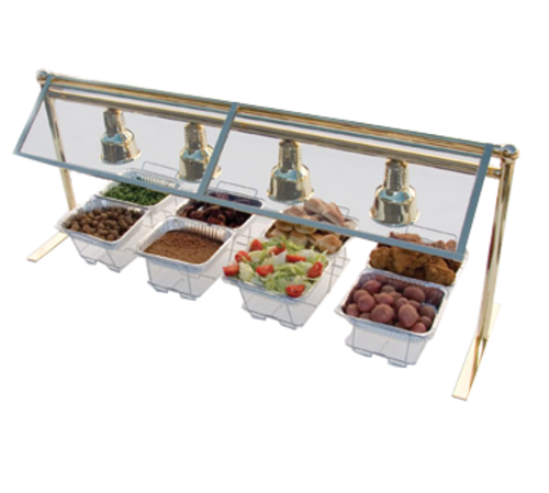 Sneezeguard, single sided, portable, 72" long, freestanding, with (1) 4-bulbs heat bar, stainless steel frame, clear enamel finish, fits standard 6' banquet table, covers 4 chafers