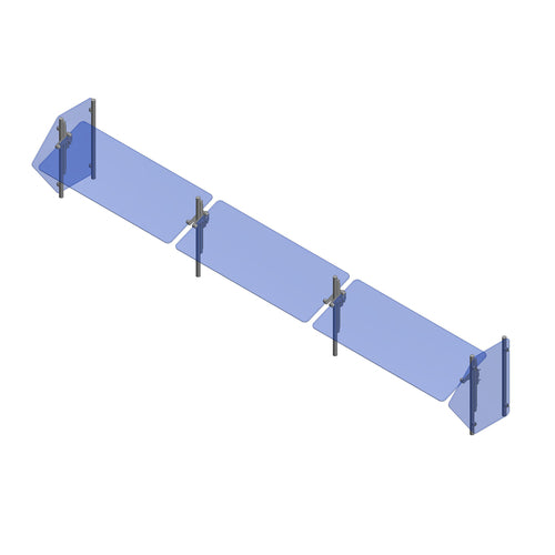 Sneeze Guard, self-service/full-service, 132"W x 18-9/16"D x 22"H, 1"OD post with brushed stainless steel finish, 3/8" tempered glass panels and 1/4" thick end panels with polished edges & 1" radius corners, front glass with vertical and angular adjustability, includes (2) additional center support post, NSF