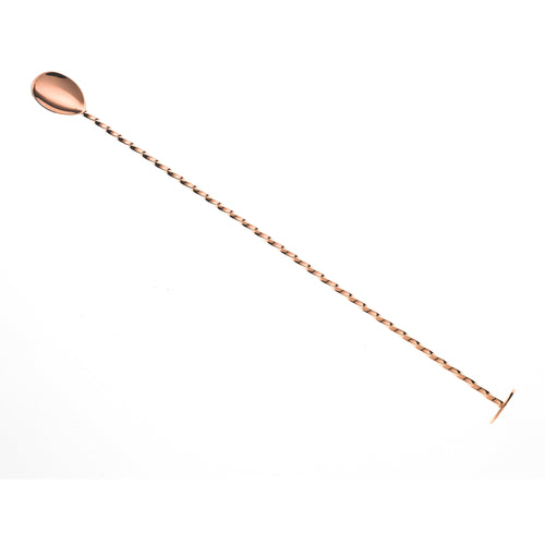 Barfly Bar Spoon, with muddler, 15-3/4" (40 cm), flat-top end, twisted stem, one-piece, 18/8 stainless steel, copper-plated finish
