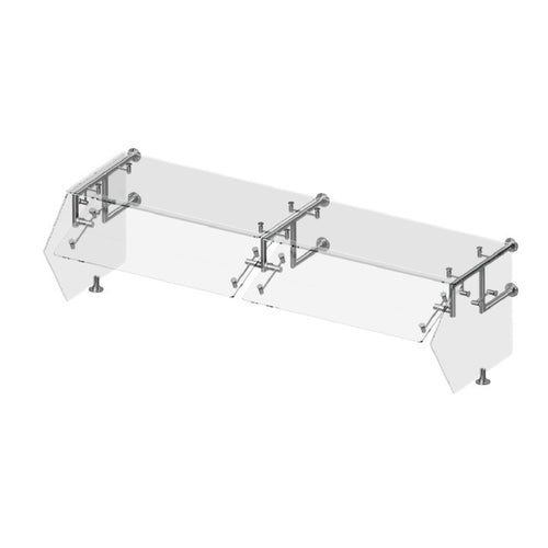 CHOICE™ Adjustable Self-Service Sneeze Guard, single sided guard with top shelf, tempered glass with polished edges, adjustable end panels, wall mount, 1" OD round stainless support posts, NSF & cULus listed (Contact Premier Sales Department for Pricing)