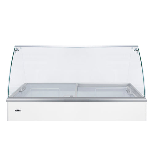 Sneeze Guard Kit, compatible with Summit NOVA35 freezer, curved glass front, glass sides, brushed aluminum work surface, ships unassembled