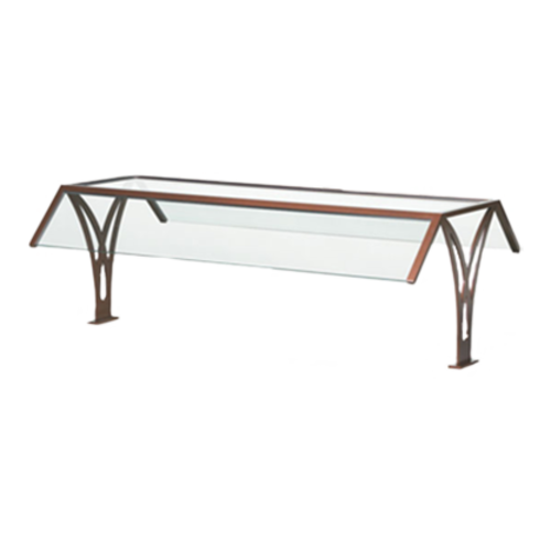 NSF2 (2011) Progressive Breath Guard, double-sided buffet, 3/8" water-jet cut aluminum with extruded aluminum glass frames, 1/4" tempered glass secured in tight fitting channel, includes acrylic end panels, for use with (5) well 4-Series Signature Server® with non-stainless steel countertops, units, custom sizes available, contact Vollrath for information, 1-year warranty, Made in USA, contact Vollrath for dimensions (note: can be mounted on non-stainless steel, laminate, solid surface, or quartz countertops), contact Vollrath for dimensions