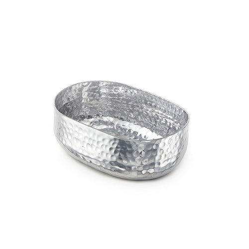 Entrée Basket, 25 oz., 6-1/2"L x 4-3/4"W x 2-1/4"H, oval, hand-wash only, hammered aluminum, silver