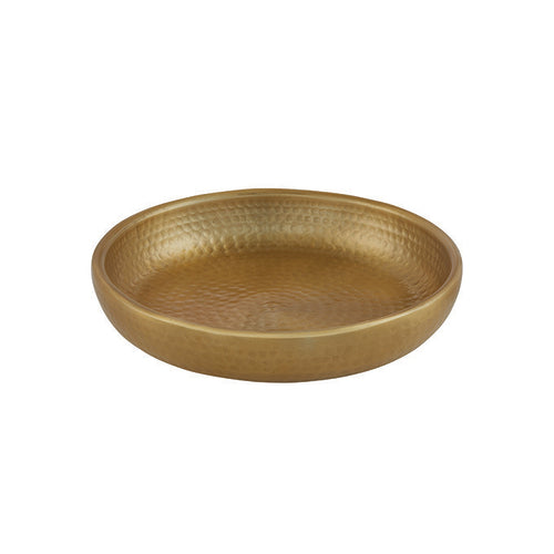 Seafood Tray, 128 oz., 14" dia. x 2-1/2"H, round, double-wall, hand-wash only, hammered aluminum, gold