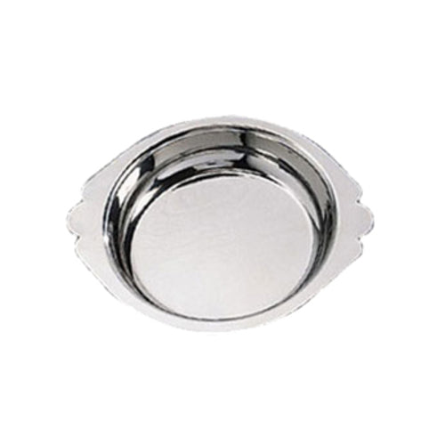 Au Gratin Dish, round, 10 oz. capacity, 6-7/8" dia. x 6" top OD, integrated side handles, dishwasher safe, stainless steel