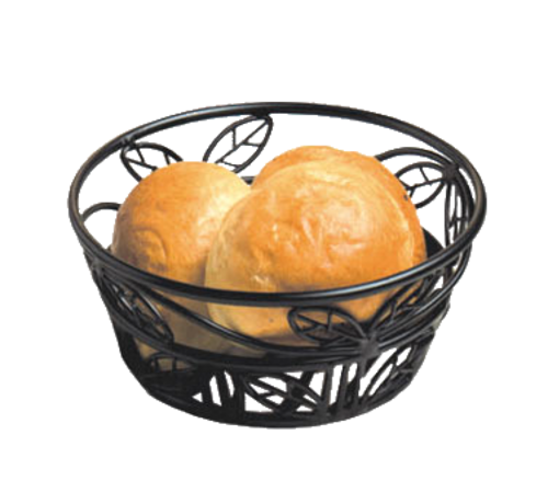 Bread Basket, 8" dia. x 3"H, black leaf design, wrought iron (hand wash only)
