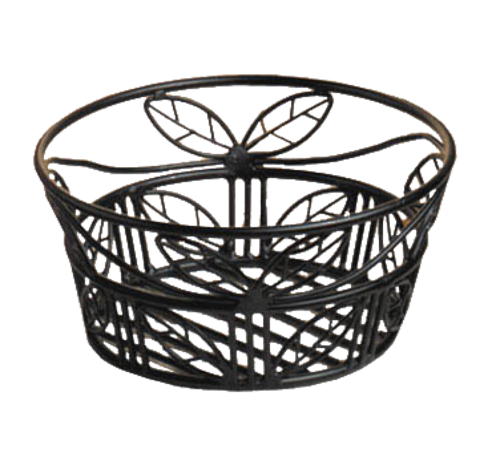 Bread Basket, 9" dia. x 3-5/8"H, black leaf design, wrought iron (hand wash only)