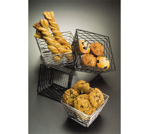 Birdnest Basket, 8" sq. top x 6" sq. bottom x 4"H, invert to riser, wire, black (hand wash only)