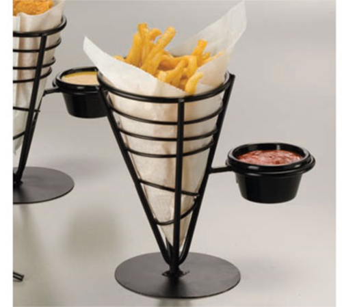 Ironworks™ French Fry Basket, 5" dia. x 9"H, conical, with (1) 3 oz. ramekin, black wrought iron (hand wash only)