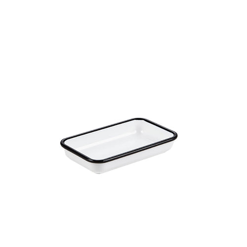 Endurance™ Platter, 6-7/8"L x 4-1/4"W x 1-1/8"H, rectangular, break-resistant, dishwasher safe, melamine, white with black rim