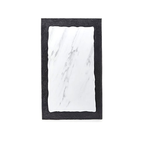 Platter/Serving Board, 21-3/8"L x 12-7/8"W x 1/2"H, rectangular, dishwasher safe, melamine, white marble with black rim pattern, Naturals™ Collection