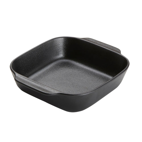 Casserole, 24 oz., 6-1/2"L x 6-1/2"W x 2"H, 8-1/4"L with handles, square, porcelain, black matte finish