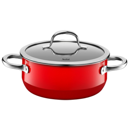 Low Casserole, 2.54 qt. (81.15 oz.), 7-7/8" dia. x 3-3/10"H, round, with glass lid, riveted stainless steel hollow handles, gas/electric/induction/oven safe, dishwasher safe, steel with Silargan® coating, passion red, Passion by Silit