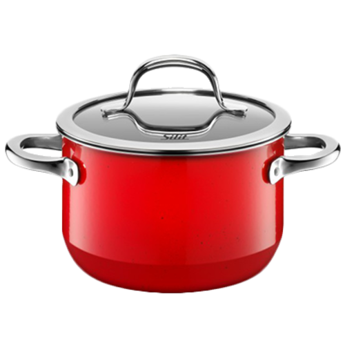 High Casserole, 2.11 qt. (67.62 oz.), 6-1/4" dia. x 4-1/8"H, round, with glass lid, riveted stainless steel hollow handles, gas/electric/induction/oven safe, dishwasher safe, steel with Silargan® coating, passion red, Passion by Silit