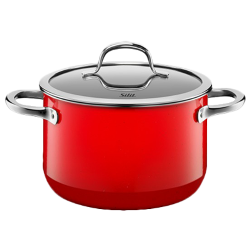 High Casserole, 3.91 qt. (125.12 oz.), 7-7/8" dia. x 5"H, round, with glass lid, riveted stainless steel hollow handles, gas/electric/induction/oven safe, dishwasher safe, steel with Silargan® coating, passion red, Passion by Silit