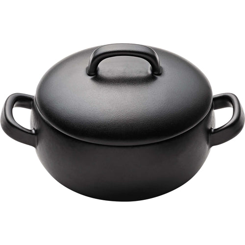Cocotte Complete, 13.2 oz., 5-9/10" dia., round, with handles, dishwasher, microwave & oven safe, stoneware, black, Playground, Specials