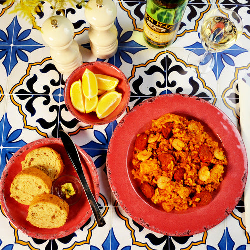 Casablanca Collection Salad Bowl, 12 oz., 7-1/2" dia. x 1-1/4"H, round, distressed crackle glaze look, chip and stain resistant, dishwasher safe, melamine, red, Dalebrook