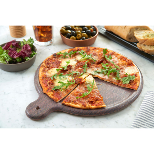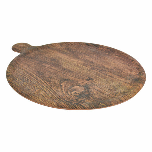 Rustic Wood Collection Platter, 17-3/4" x 15" x 1/2"H, round, with handle, anti-slip silicone feet, chip and stain resistant, dishwasher safe, melamine, wood finish, Dalebrook
