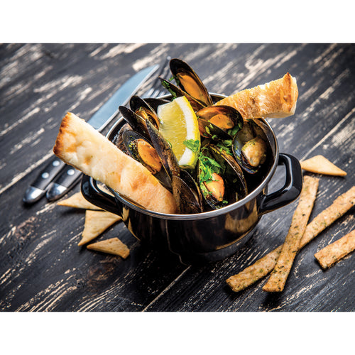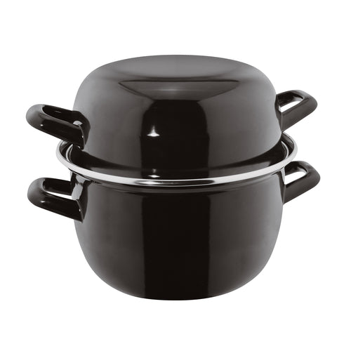 Mussel Pot, 7-1/8" dia. x 4-3/4"H, with lid, enameled stainless steel, black