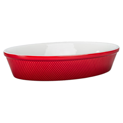 BIA Cordon Bleu® Baking Dish, 1-3/4 qt., 12-1/2" x 8-3/4", oval, diamond texture, red (NET)