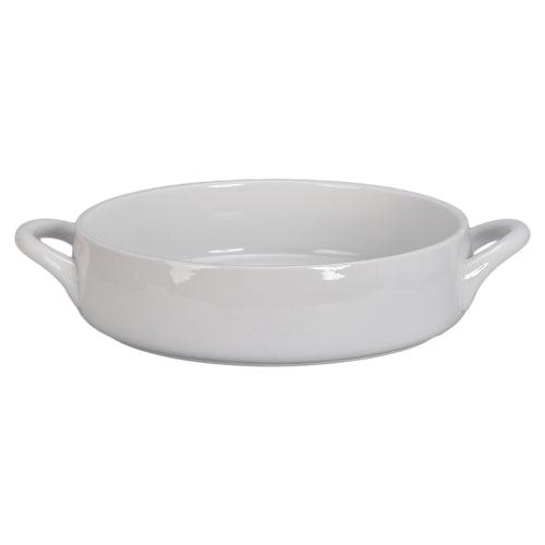 BIA Cordon Bleu® Baker, 3-1/2 qt., 14-1/4"L x 11"W x 2-3/4"H, round, with handles, dishwasher/microwave/oven safe, porcelain, Taos, white (1 each minimum order) (NET)