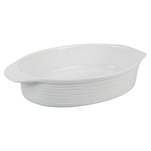 BIA Cordon Bleu® Baker, 2-1/2 qt., 14"L x 8-1/2"W x 2-1/2"H, oval, with handles, dishwasher/microwave/oven safe, porcelain, Kalahari, white (1 each minimum order) (NET)