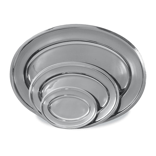 Platter, 19-3/4" x 15-3/5", oval, rolled edge, dishwasher safe, stainless steel