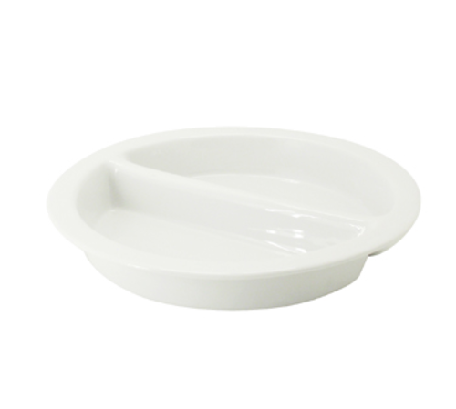 GN Divided Food Pan, 15-3/8" dia. x 2-1/2"H, round, 2-compartments, dishwasher, oven and microwave safe, porcelain, BF™, Super White (Sold by case)