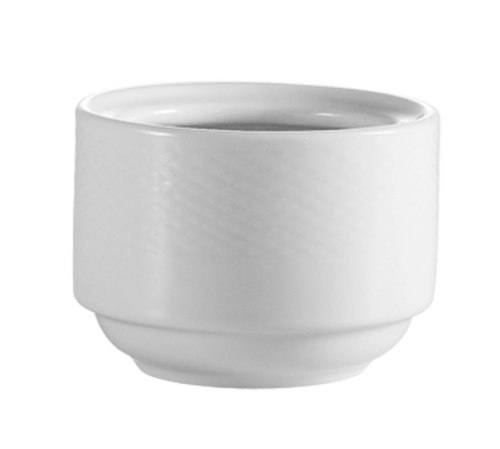 Boston Bouillon Cup, 7-1/2 oz., 4-1/2" dia. x 2"H, round, stackable, embossed, dishwasher, oven and microwave safe, porcelain, Super White (Sold by case)