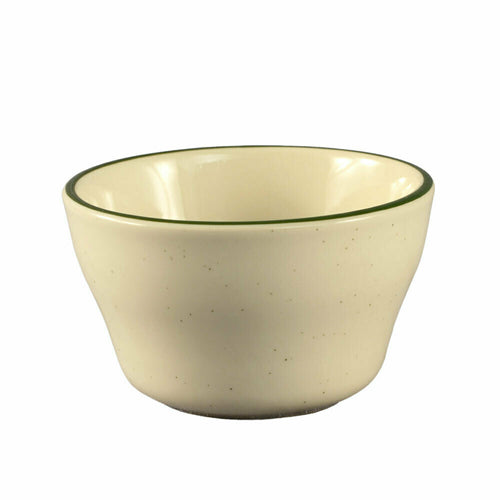 Emerald Bouillon Cup, 7-1/4 oz., 4" dia. x 2-1/2"H, round, dishwasher, oven and microwave safe, stoneware (ceramic), Emerald Rim/Emerald Speckled/American White (Sold by case)