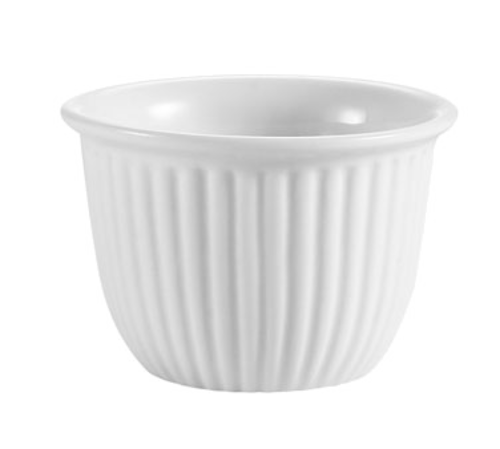 RKF Custard Cup, 6 oz., 3-1/2" dia. x 2-3/8"H, round, fluted, dishwasher, oven and microwave safe, porcelain, Super White (Sold by case)