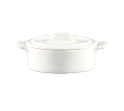 RCN Specialty Gourmet Jar, 6 oz., 5-1/2"L x 3-3/4"W x 2-7/8"H, oval, with 2 handles, with lid, dishwasher, oven and microwave safe, porcelain, Super White (Sold by case)