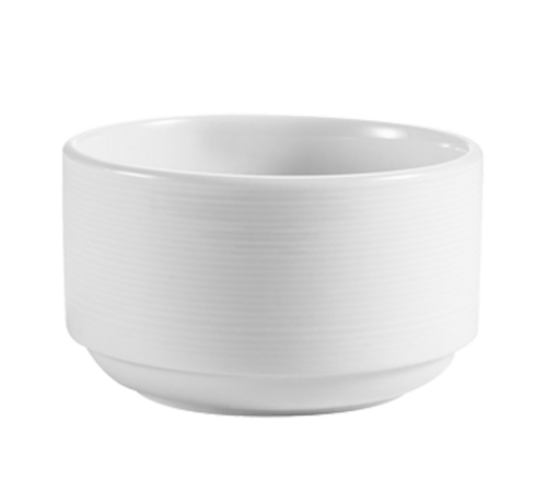 Harmony Bouillon Cup, 12 oz., 4" dia. x 2-3/8"H, round, stackable, embossed, dishwasher, oven and microwave safe, porcelain, Super White (Sold by case)