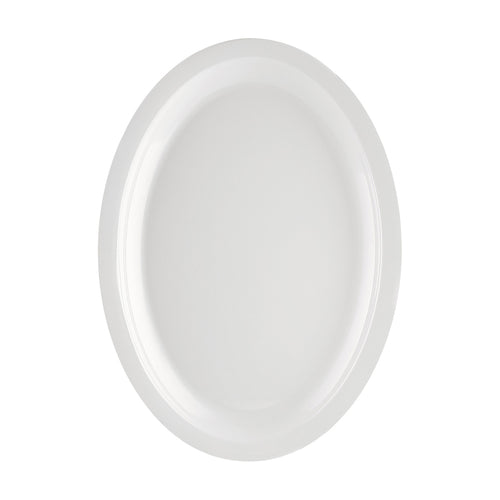 Maxwell Platter, 13-1/4"L x 9-5/8", oval, narrow rim, lightweight, break, stain and odor resistance, dishwasher safe, melamine, white (Sold by case)