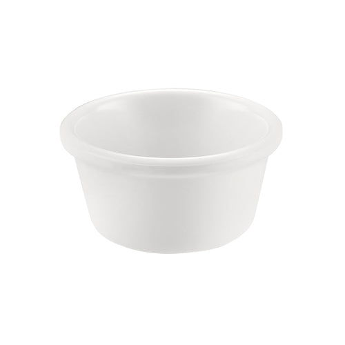 Ramekin, 4 oz., 3-1/4", dia. round, smooth, break, stain and odor resistance, dishwasher safe, melamine, white