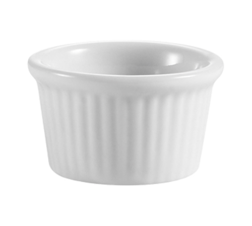 RKF Ramekin, 1/2 oz., 1-3/4" dia. x 1"H, round, fluted, dishwasher, oven and microwave safe, porcelain, Super White (Sold by case)