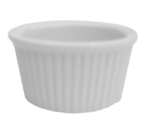 RKF Ramekin, 2-3/4 oz., 2-3/4" dia. x 1-1/2"H, round, fluted, dishwasher, oven and microwave safe, porcelain, Super White (Sold by case)