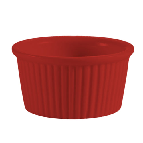 RKF Ramekin, 3 oz., 3" dia. x 1-1/2"H, round, fluted, dishwasher, oven and microwave safe, stoneware (ceramic), Red (Sold by case)